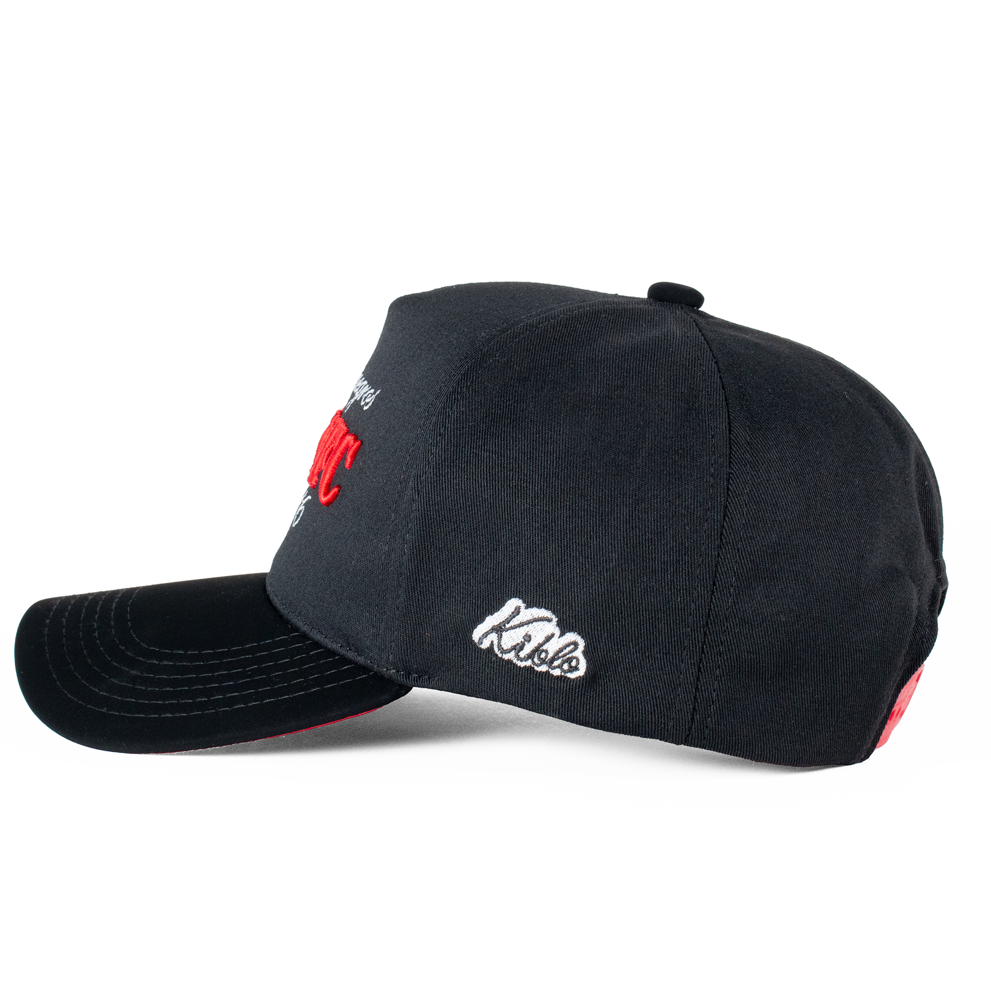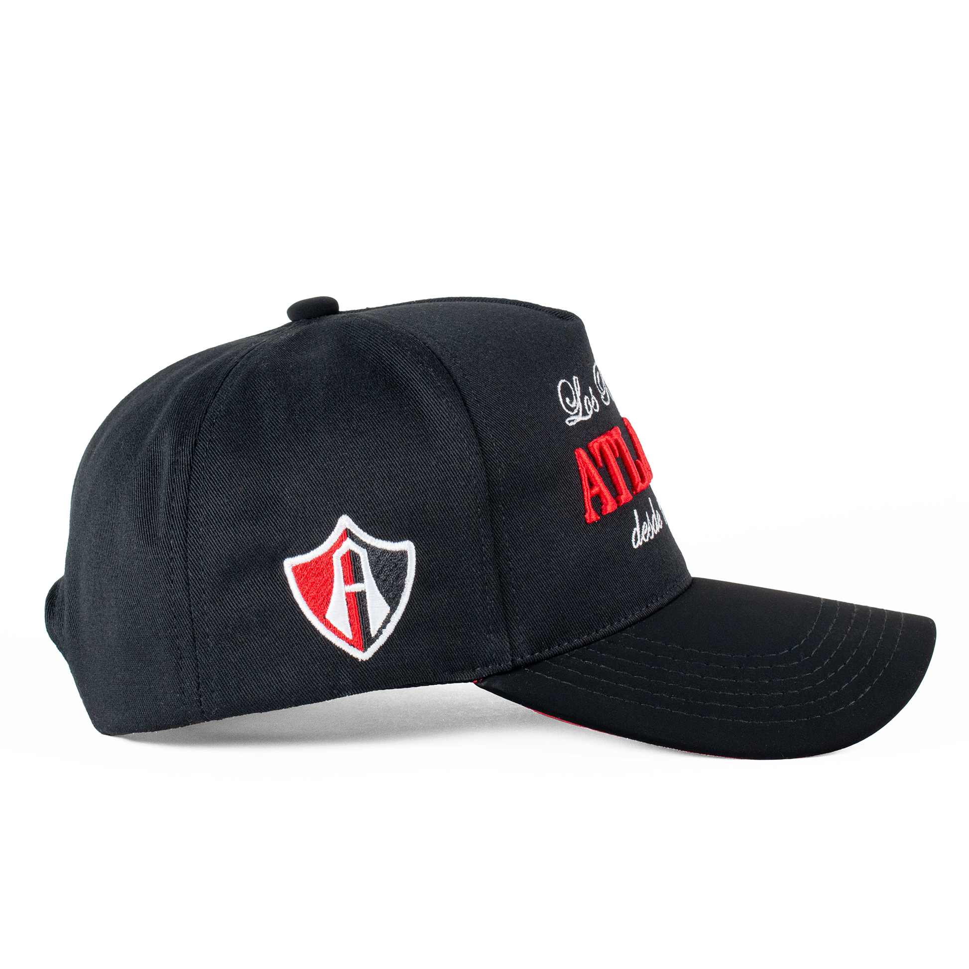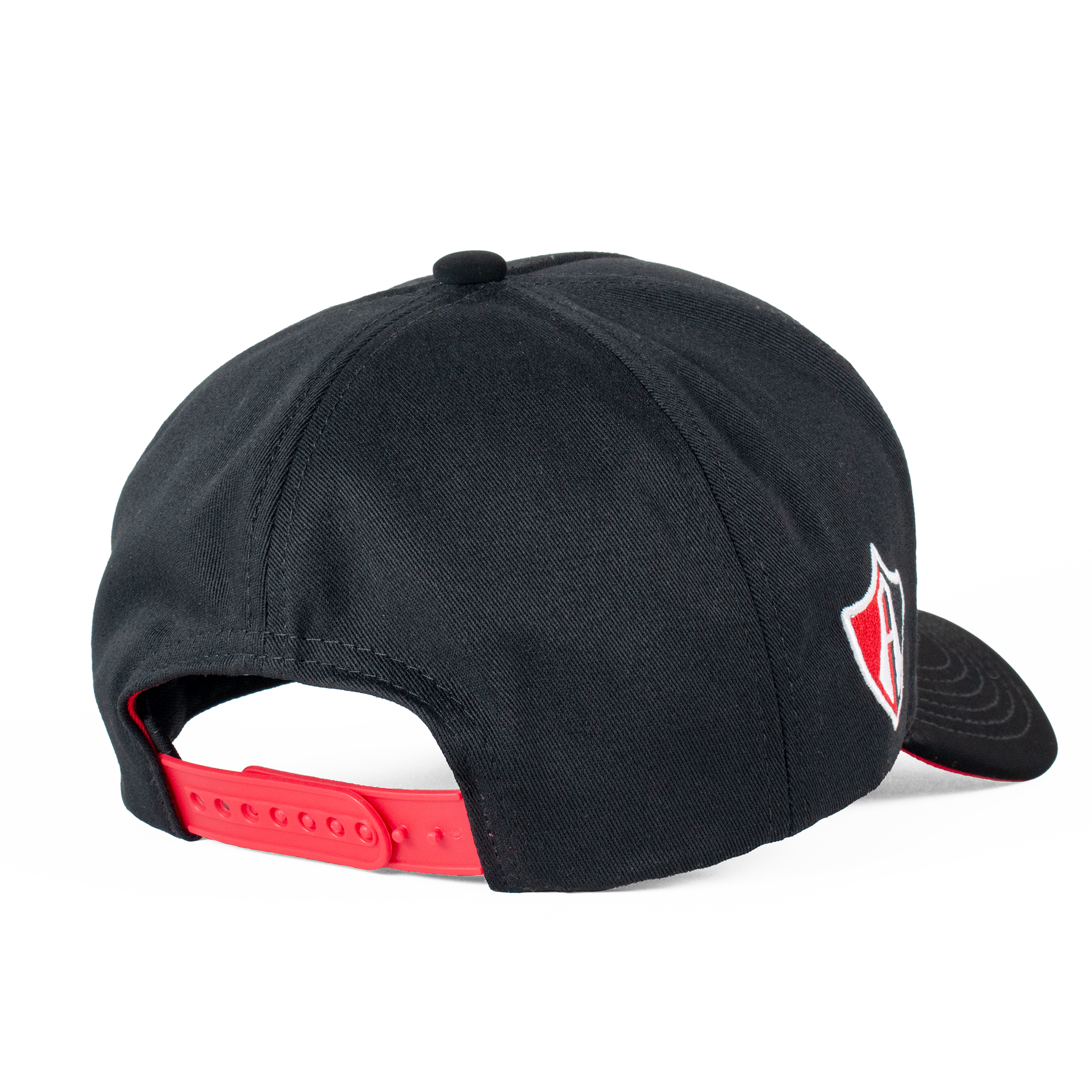 Una gorra pensada para quienes viven con intensidad cada momento rojinegro. Su corona en gabardina negra aporta fuerza y sobriedad, en contraste con la visera en terciopelo negro y el bajovisera en gabardina roja, un detalle que evoca la energía inconfundible del Atlas. En el frente, un bordado en técnicas 2D y 3D destaca la esencia del club, acompañado del escudo en un lateral y el logo de Kiblo en el otro. El forro interno de satín rojo y el broche de plástico en tono rojo sellan la identidad de esta pieza que combina tradición y estilo contemporáneo.