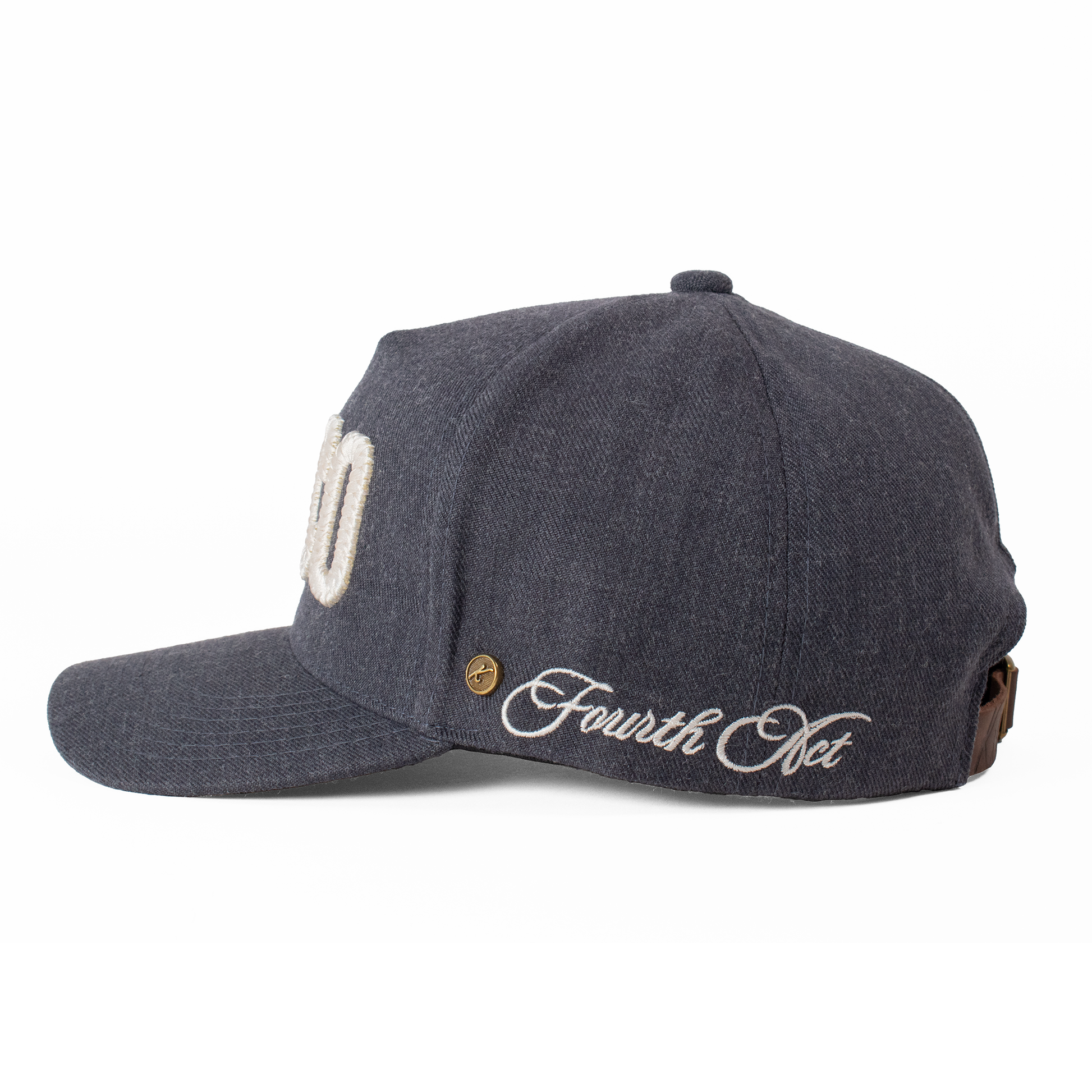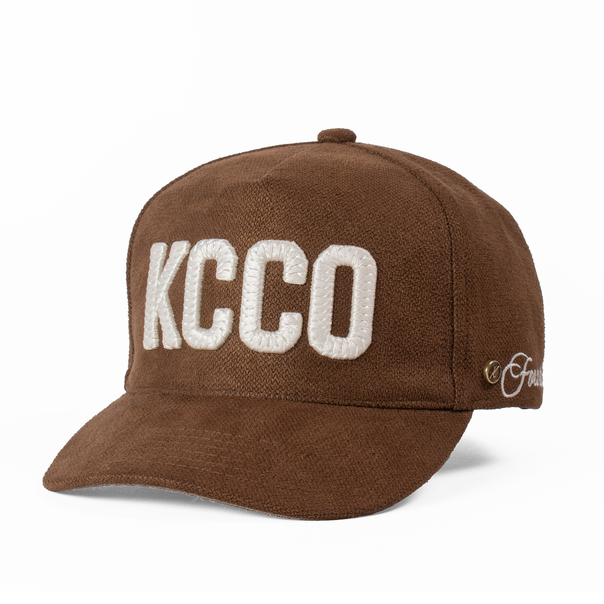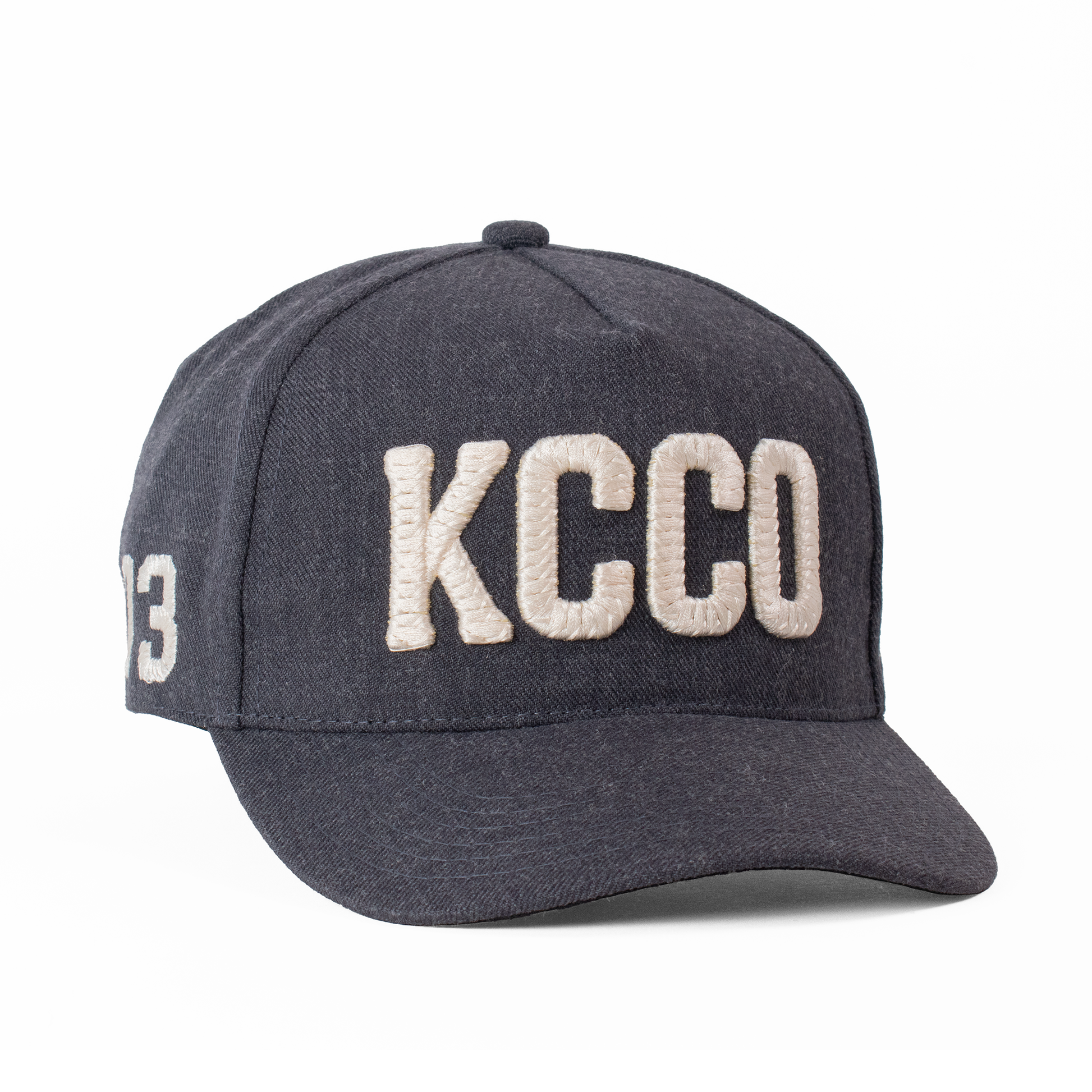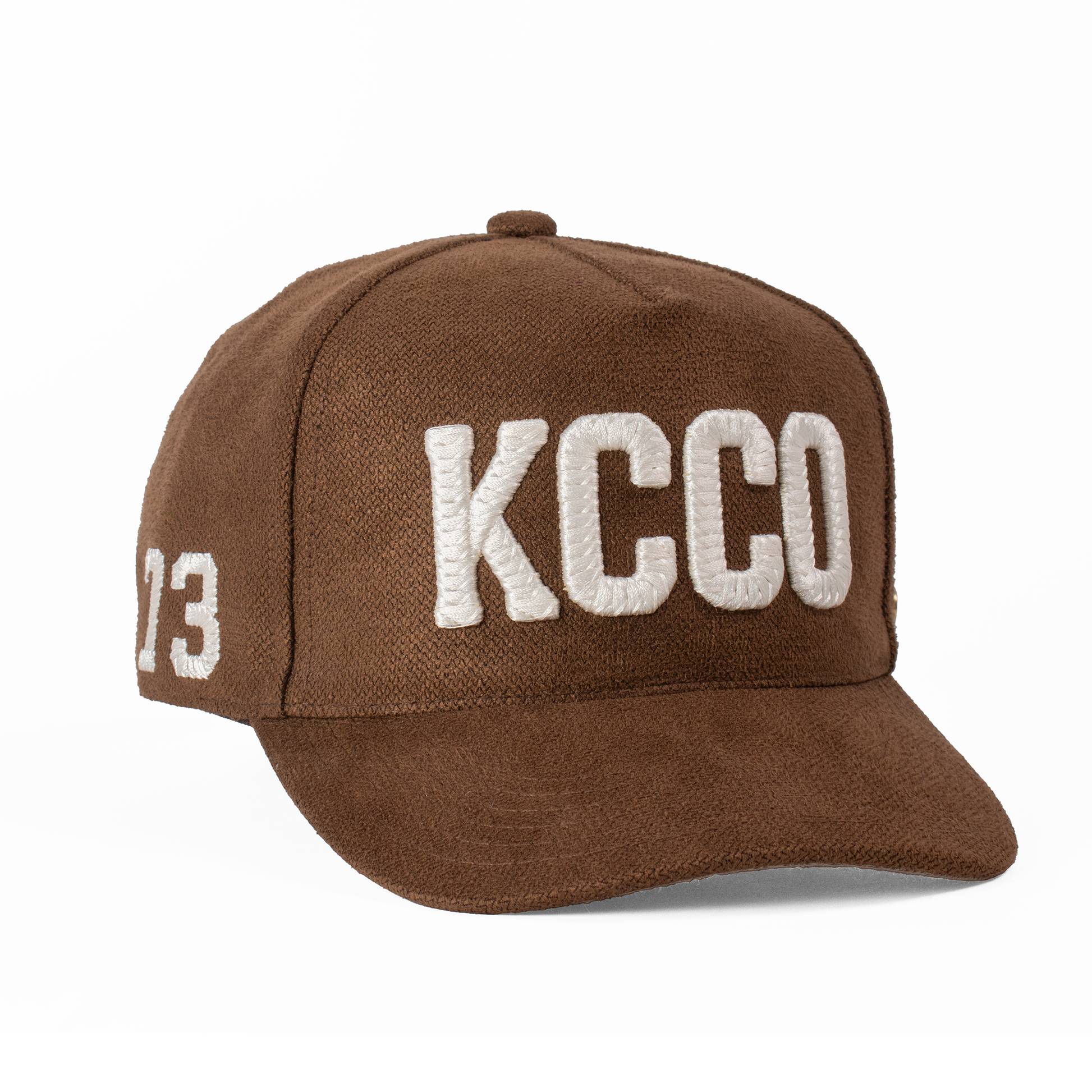 Acabados: Bordado frontal KCCO y lateral '73' con técnica calada que genera un relieve. Incluye la firma bordada Fourth Act en la parte posterior, pin metálico Kiblo en oro viejo, y etiqueta tejida "Kiblo Caps Co., handcrafted in Mexico".