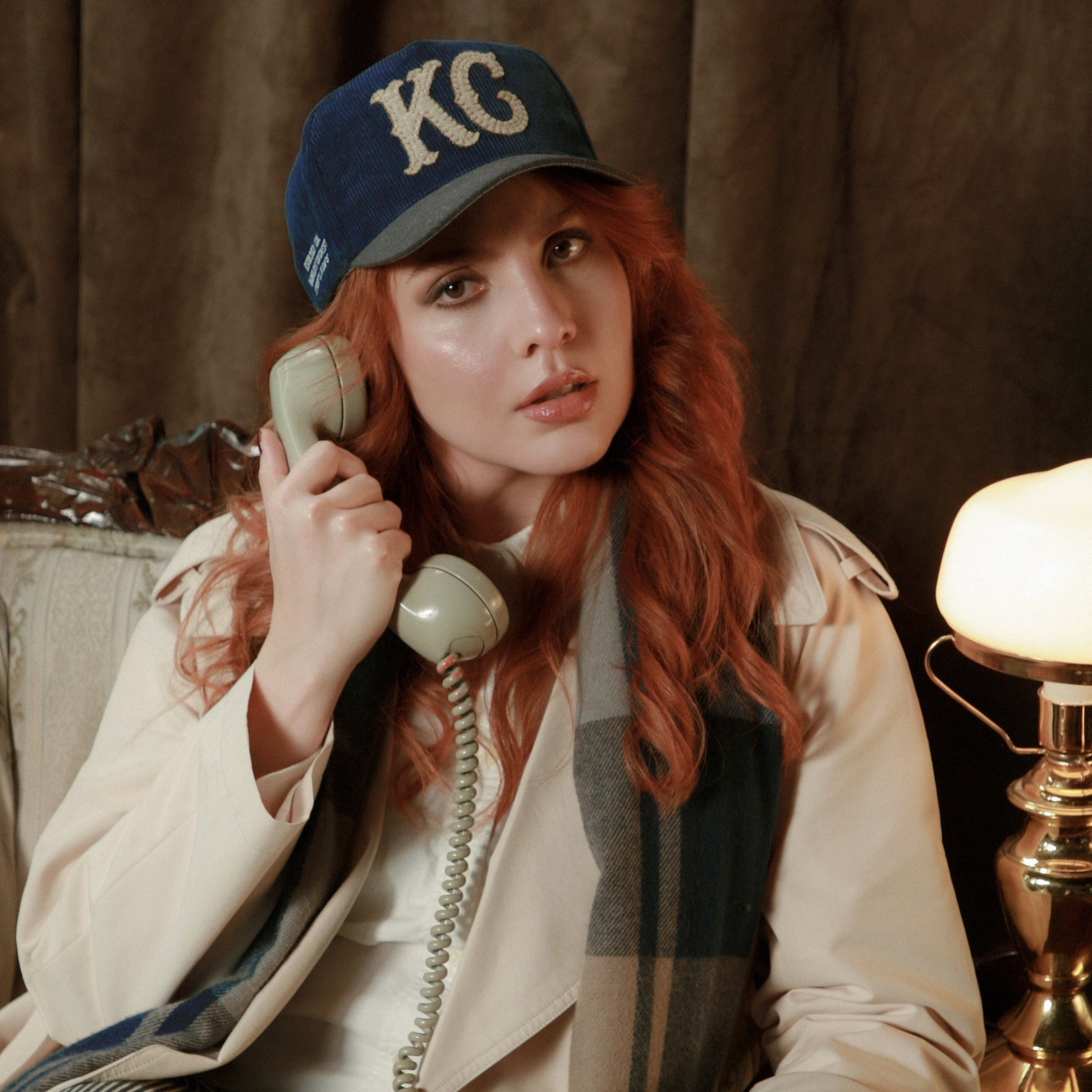 Acabados: Letras frontales 'KC' en parche de paño bordado con puntadas separadas y el número '73' con técnica de bordado calado. Pin metálico Kiblo en tono oro viejo, y etiqueta tejida posterior "Kiblo Caps Co., handcrafted in Mexico".