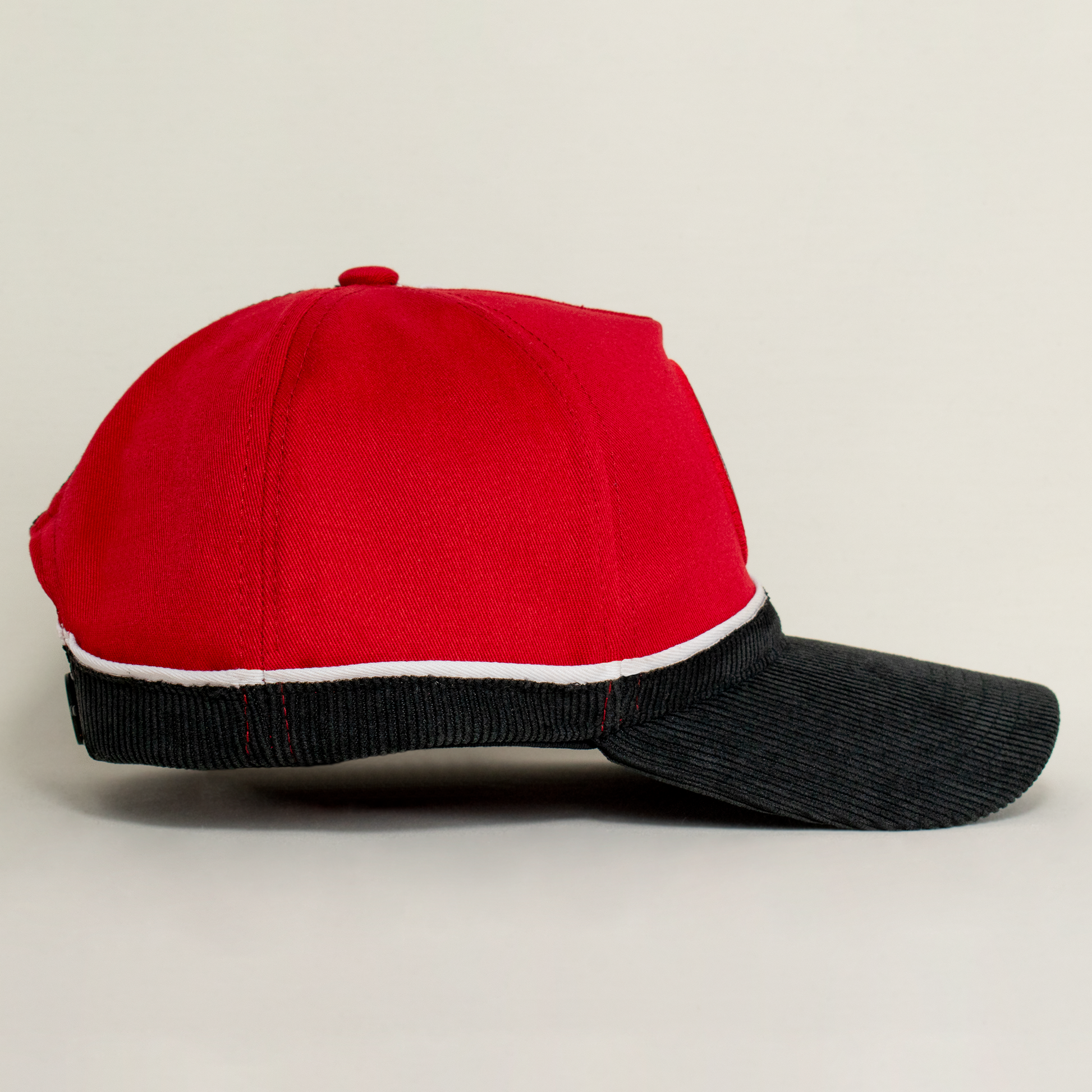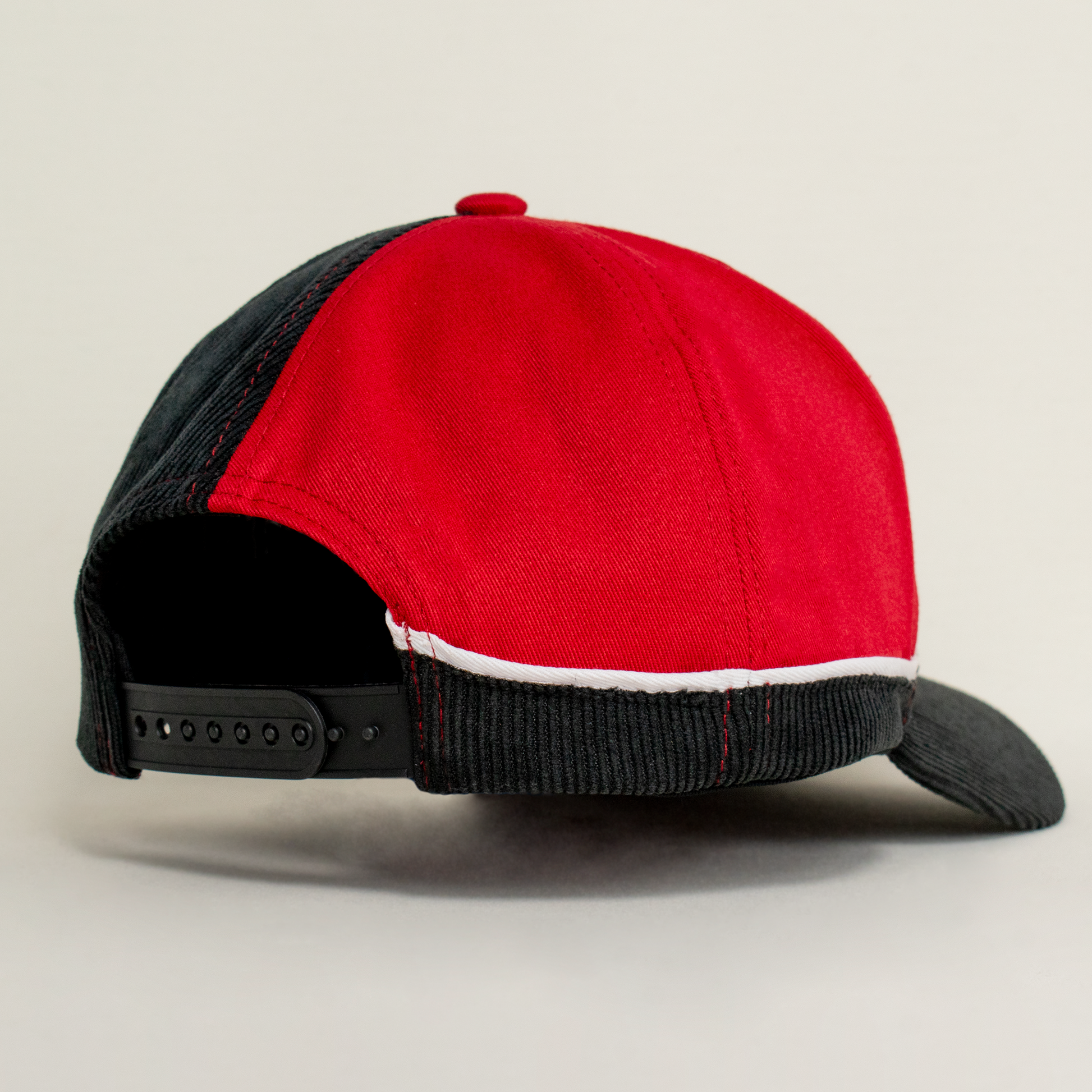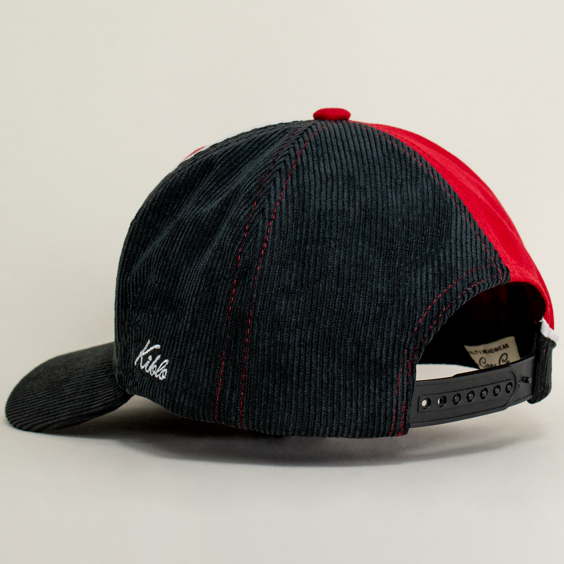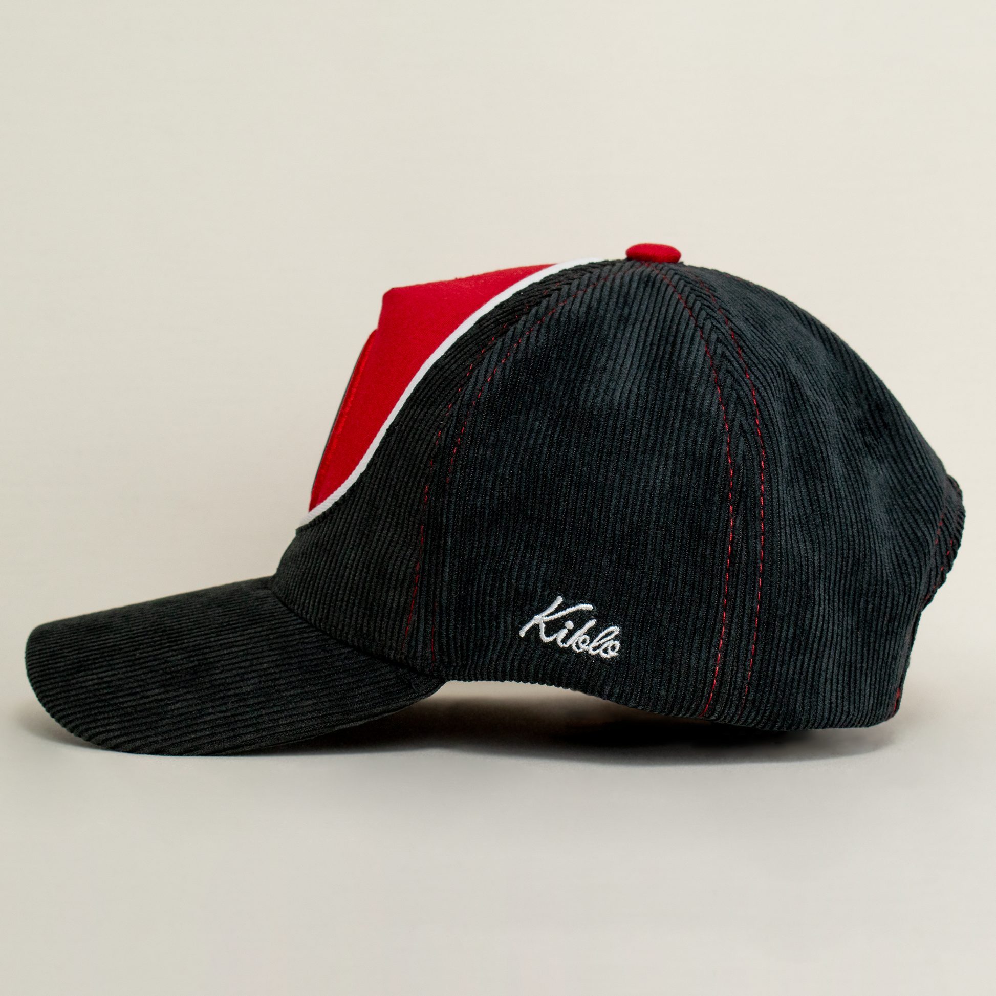 Una pieza que celebra la tradición con un giro inesperado. Esta gorra combina dos texturas contrastantes —gabardina roja waterproof y pana negra— en un diseño que se distingue por su confección poco convencional. El vivo blanco realza las uniones de las telas, aportando un detalle que resalta la silueta y la hace única. En el frente, el emblema clásico del Club Tijuana honra la identidad de los Xoloitzcuintles, mientras que el logo discreto de Kiblo en el lateral reafirma la calidad detrás de cada detalle.